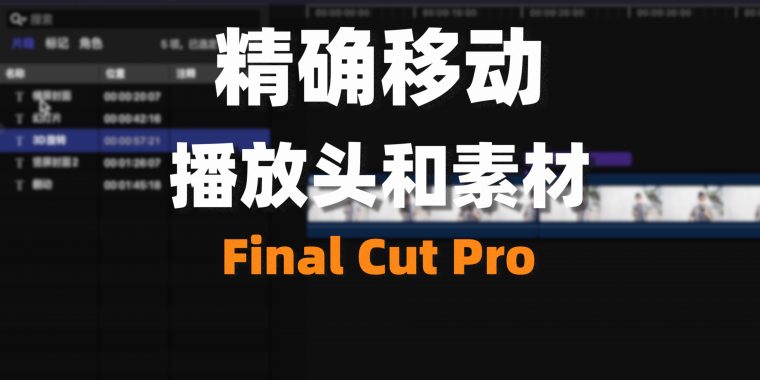 Final Cut Pro精确移动播放头和素材时间点 发表于2024年6月7日2024年6月11日 作者 胖胖熊 快捷键 + 【时间码】向右移动输入时间码的时长 – 【时间码】向左移动输入时间码的时长 , 向左移动一帧 . 向右移动一帧 shift , 向左移动十帧 shift . 向右移动十帧